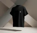 Camiseta oversized preta com pequeno logo branco no peito. Confeccionada em tecido macio e agradável ao toque, garante caimento solto e moderno para qualquer ocasião.